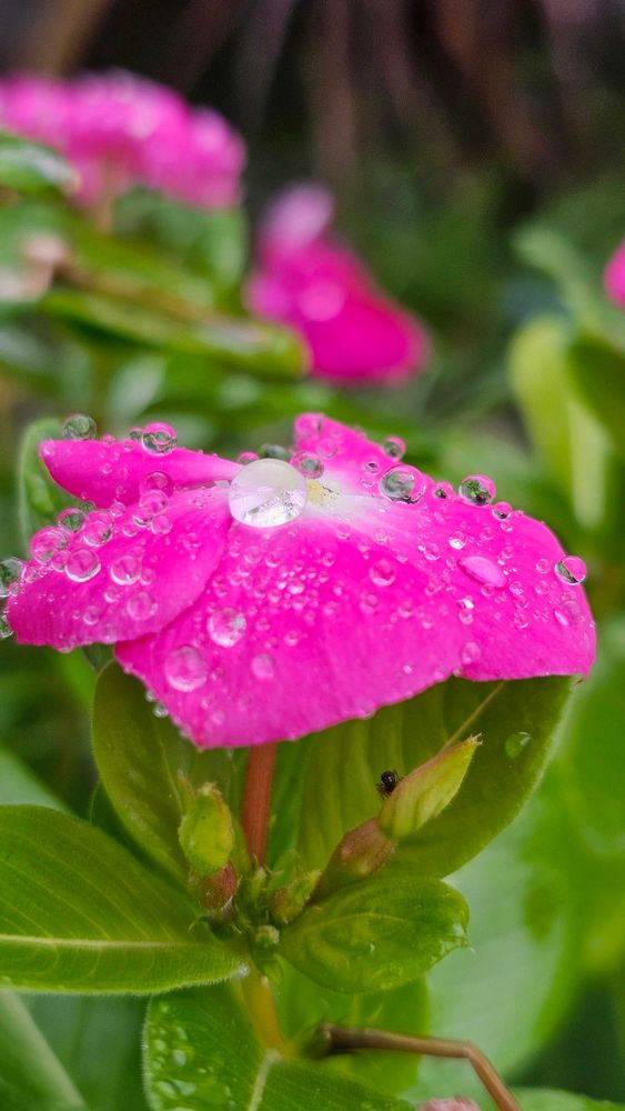 ニチニチソウと雨粒は相性バッチリなのよね💕