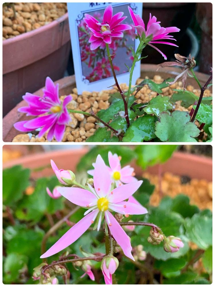 大文字草の紅孔雀の可愛さに負けてお持ち帰り😍何年も咲いてる大文字草の株が大きくなったので植え替えしました🌸ピンクの両手を広げ可愛くて☺️癒されます💕💕