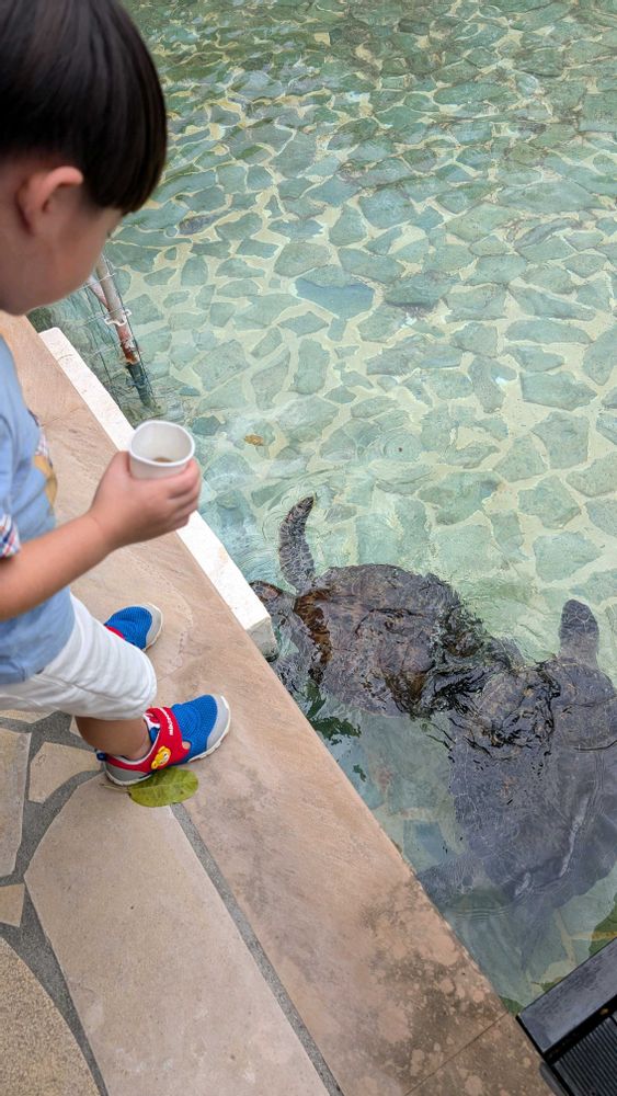 島尻方面へ行く前にウミガメエサやり体験に(孫🧒は大喜び)