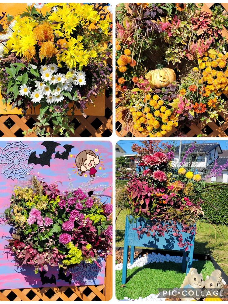ハロウィン飾り ハンキングの素敵な寄せ植えがずらりと