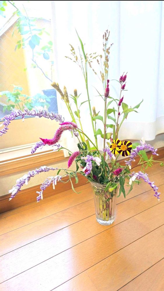 ハーブボランティアで、お土産にお花をいただきました🔅