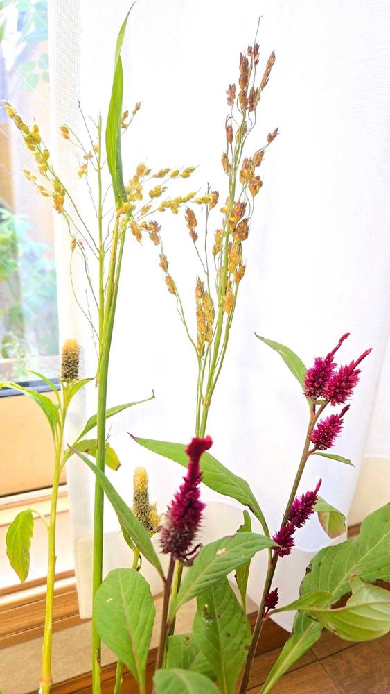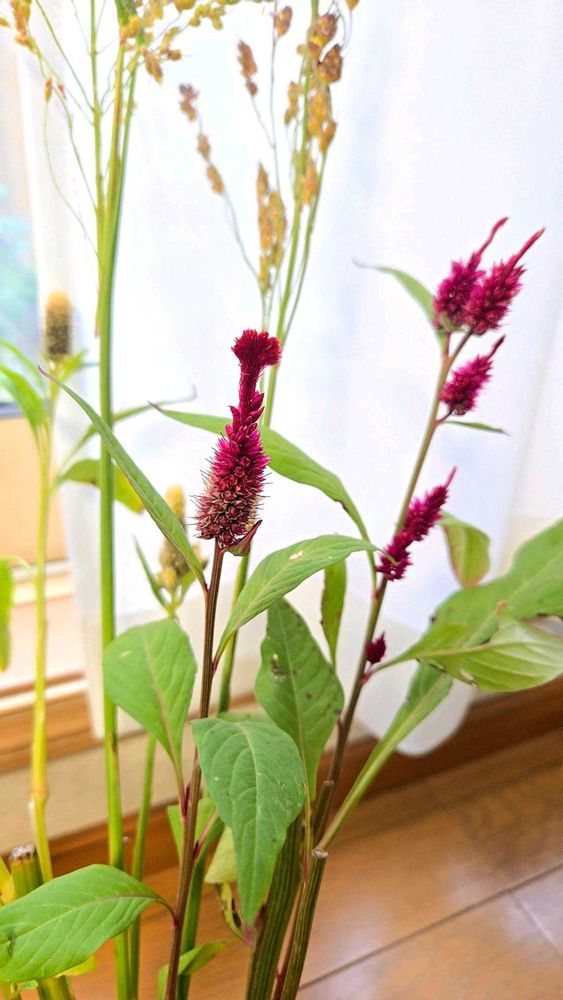 ケイトウは何回かドライにしてみたのですが、鮮やかな色はそのままに、楽しませてくれます✨