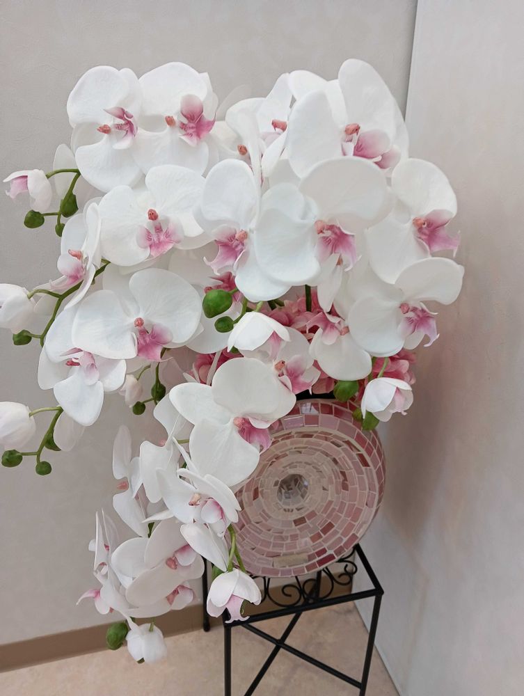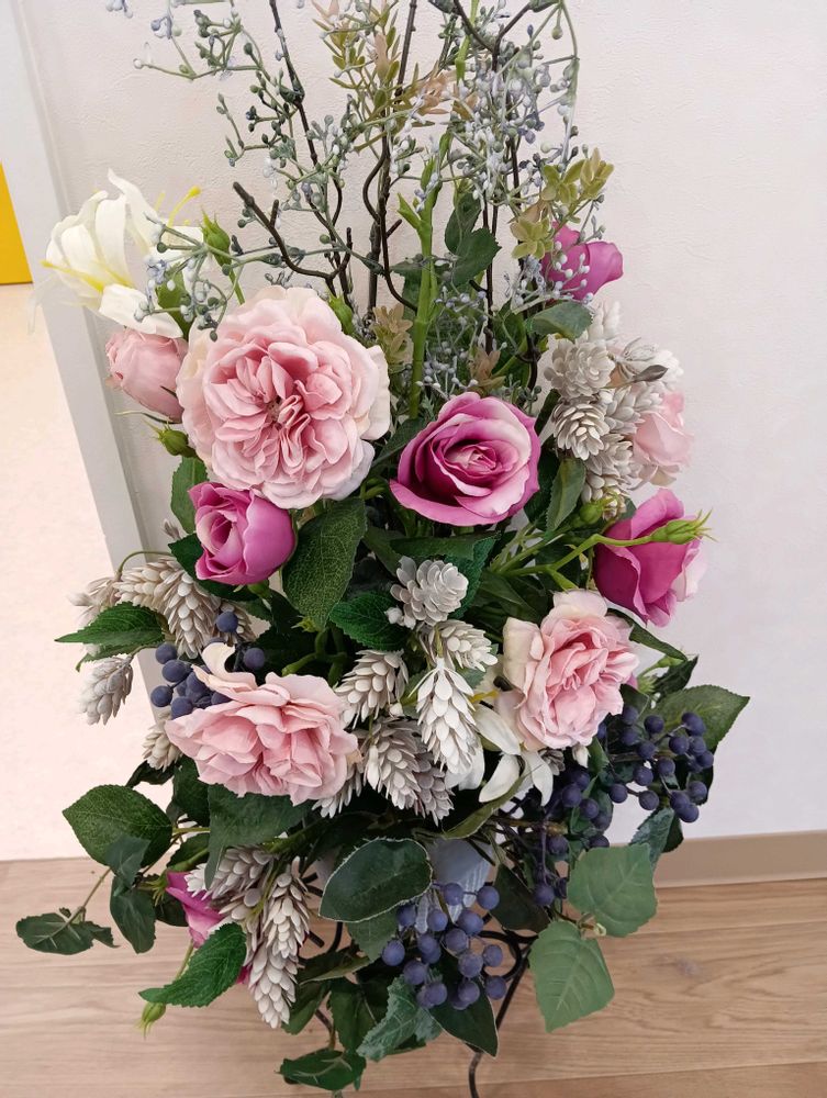🛵で村なか散歩😎医院のロビーは、お花が沢山🩷