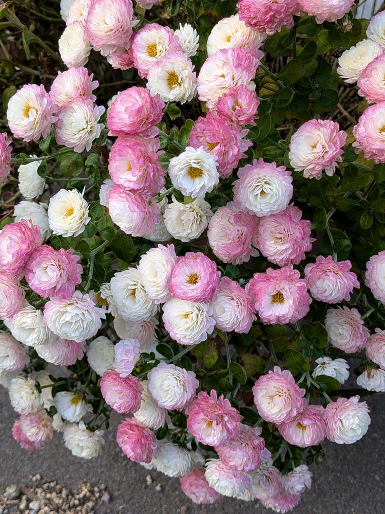 もともとは3色寄せのポット売りだったやつ。白、ピンク、もう一つはなんだっけ⁉️🙄記憶にない😅バラして植えて、花泥棒にごっそり枝おられ、5年位の間に生き残ったのはこの白だけ。