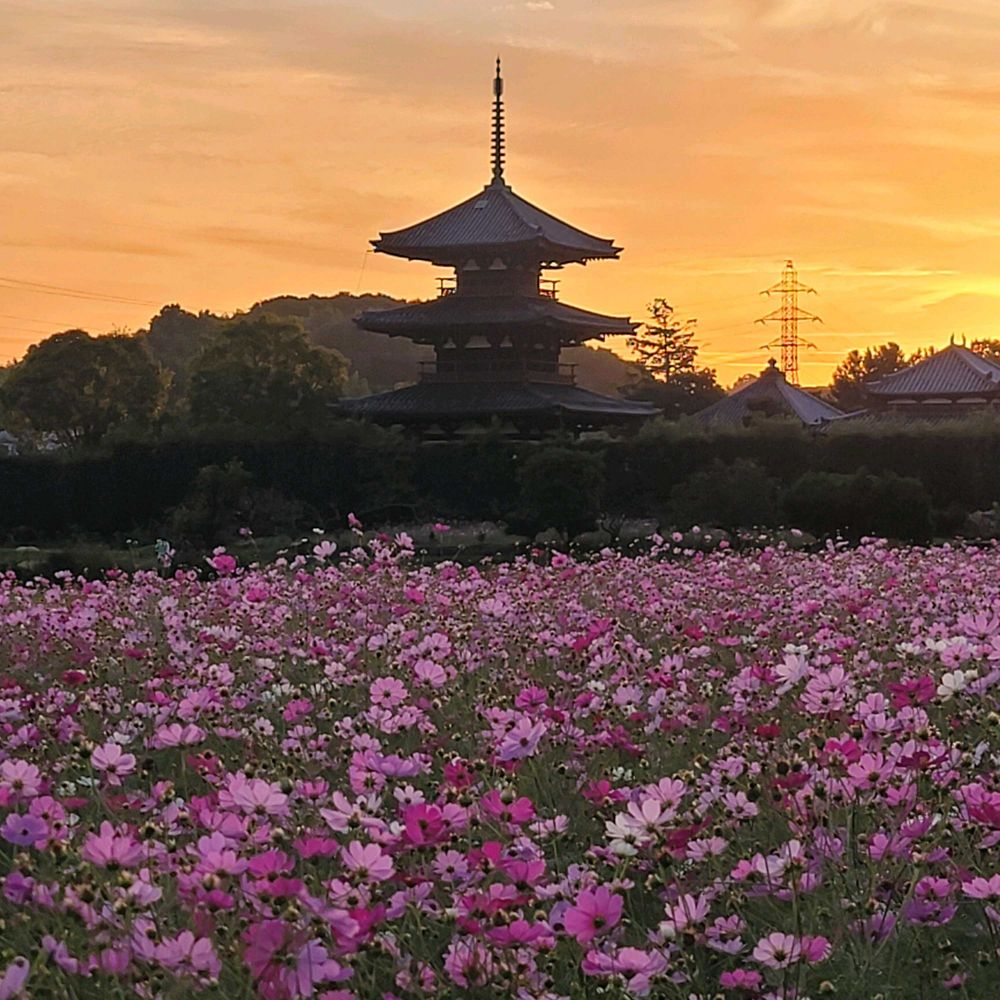 夕焼けとコスモスメチャクチャ綺麗😆