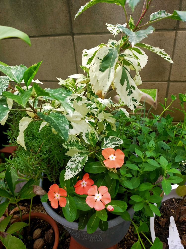日々草,ハイビスカス スノーフレーク,寄せ植えの投稿画像