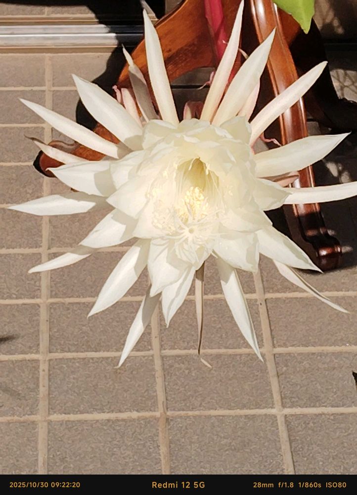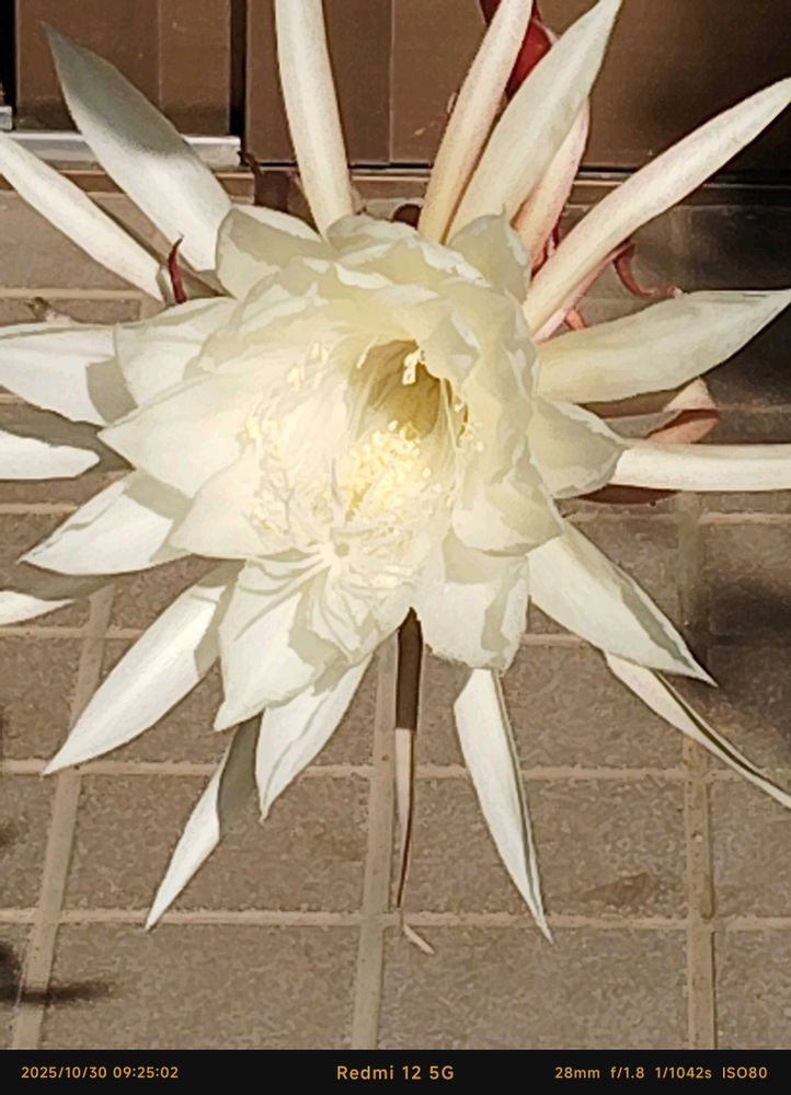 我が家では新記録の4回目ですが びっくり(@_@;)ぽんは 太陽の下で咲いてます 昨晩私が寝るときは咲いてなかったのに 今朝見たら咲いてたので びっくり😱 お昼すぎまで咲いてました