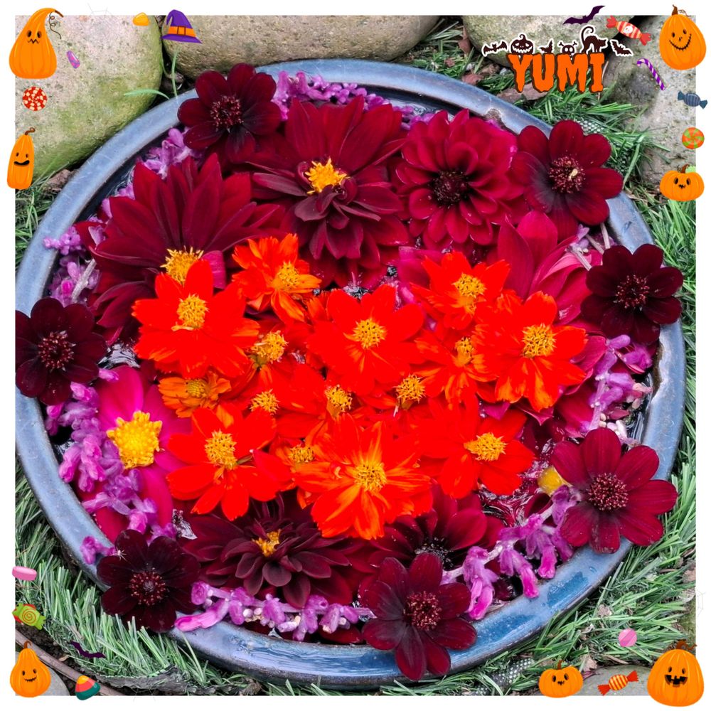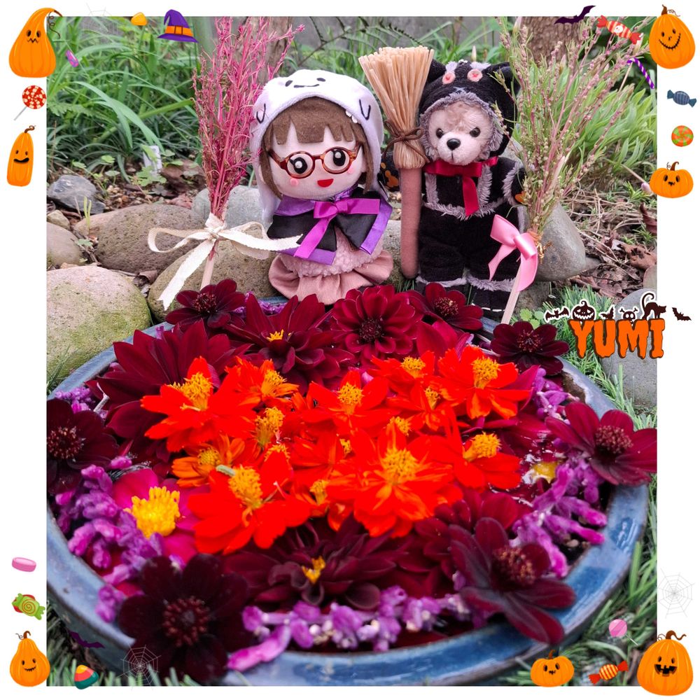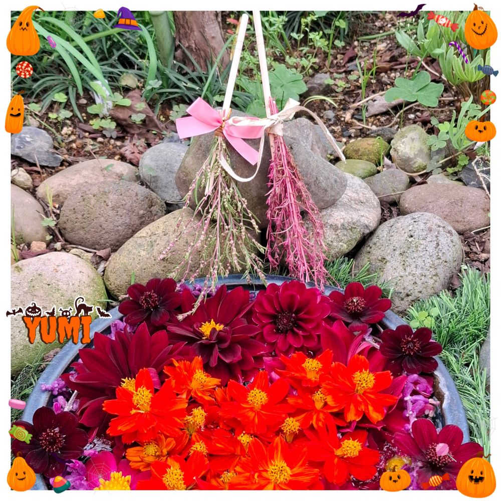 Halloween🎃の花手水&ほうき🧹可愛すぎる〜〜🥰🥰