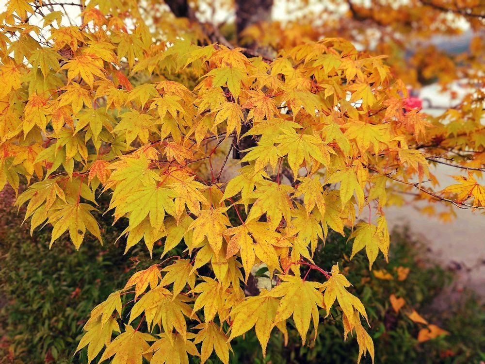 道路沿いのもみじが紅葉してとても綺麗でした。