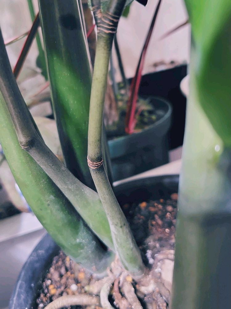 ザミオクルカスって、古くなった枝?は、節にシワ線が入ってきて、ちょっと触っただけで、ポキっと↓の位置で折れるんです。