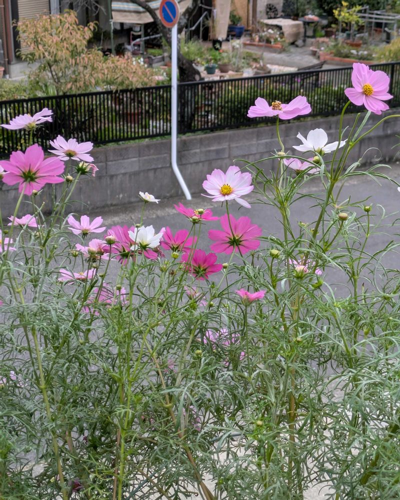 うちにも縁取りピンクのコスモスがあったはずと探したら、一株ありました。