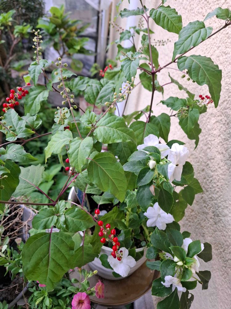 ジュズサンゴ🔴とインパチェンス🤍