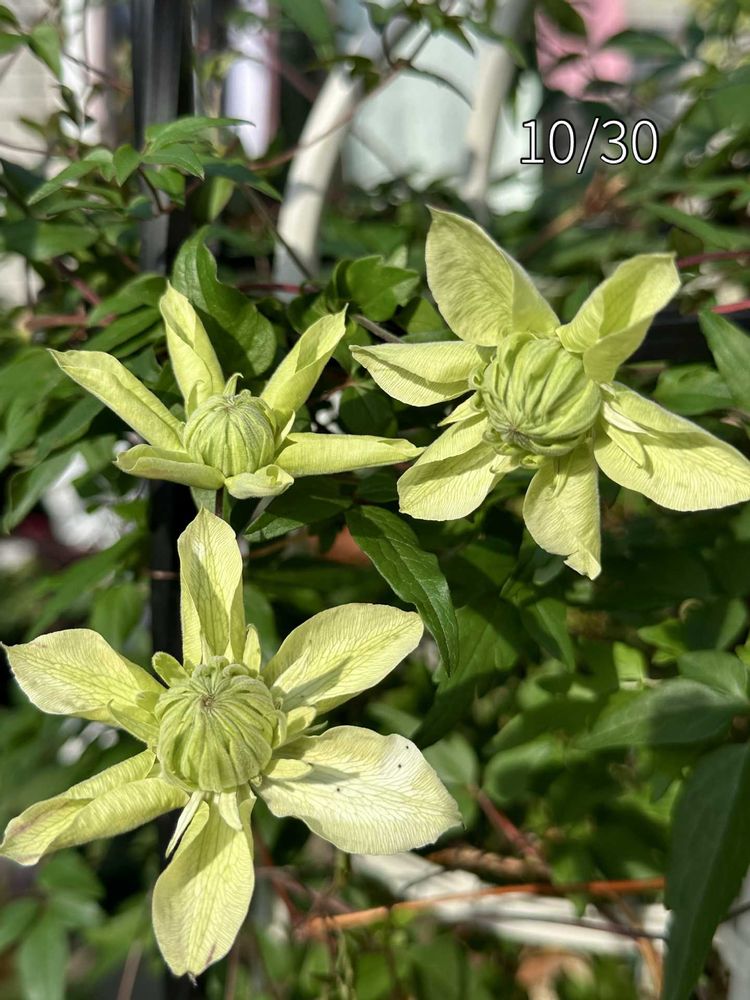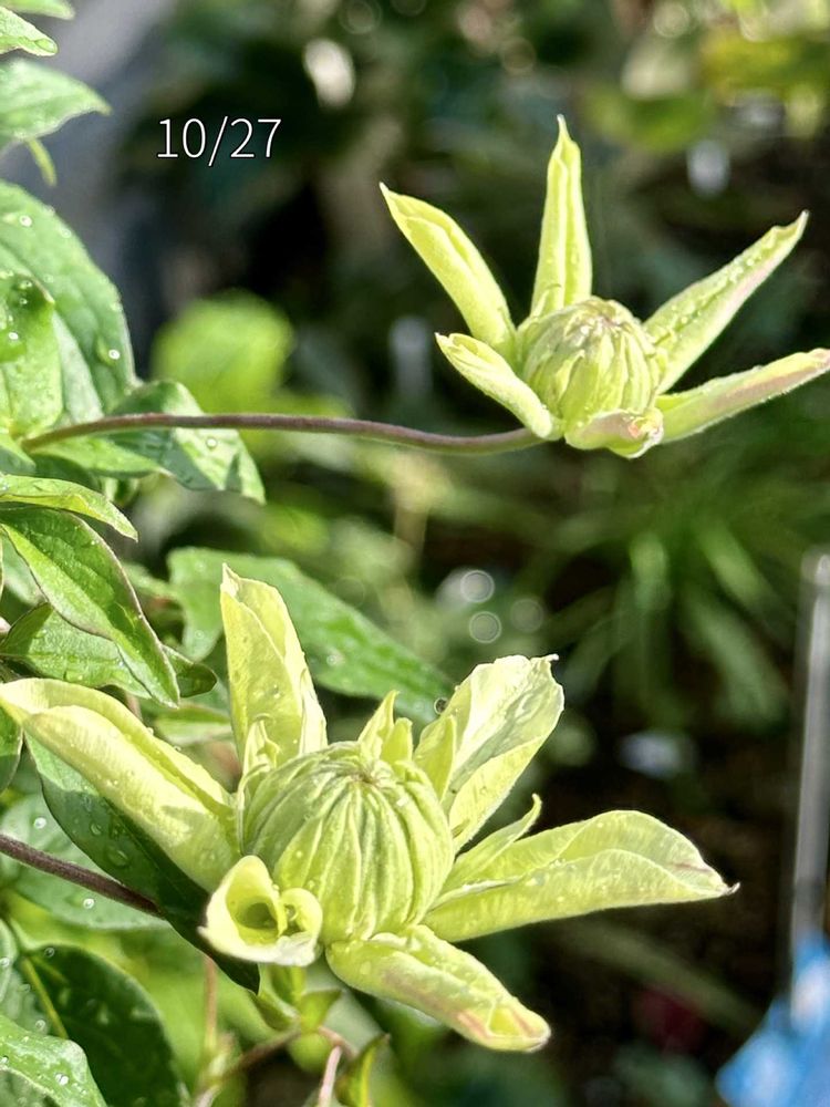 もう10月も終わりなのに鉢植えのクレマチス白万重に蕾が10個ぐらいありました!