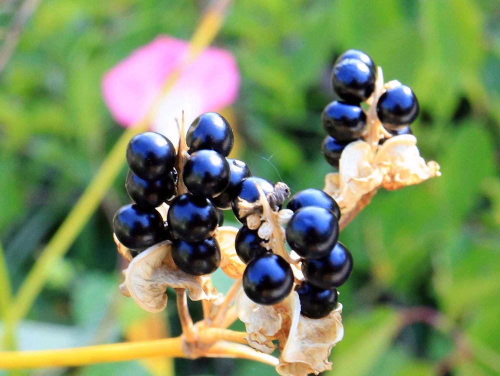 万葉集などではヒオウギは花よりも、この黒光りする射干玉の方が詠われます(*^o^*)♪