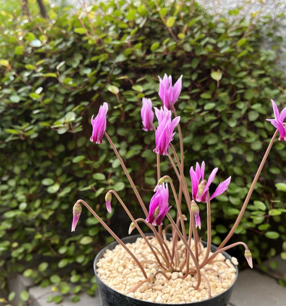 私、こんなにどっぷりハマっていますがらシクラメン歴はまだ浅くて、やっと4年目になったところなので偉そうには言えないのですが😅ふぶきさんと同じ岩手県に仲良しのシクラメン仲間がいるのですが、彼女はお庭に、ヘデリフォリウム、コウム、プルプラセンス(夏咲き)を植えてきれいに咲いていますよ☺️