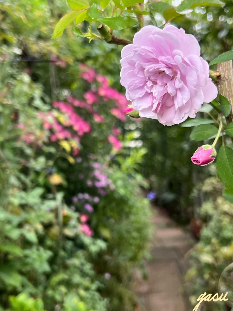 ④レイニーブルー、今年はおまけの花。来年の楽しみかなぁ✨ バックはアンジェラをメインに賑やかになるはずの小道ですが‥菊メインになってます😂