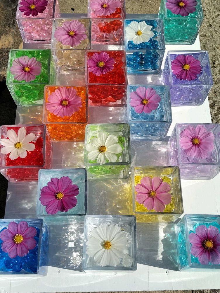 最初の花手水🌸水羊羹やゼリーに見える🤭プルンプルンして美味しそう🎵