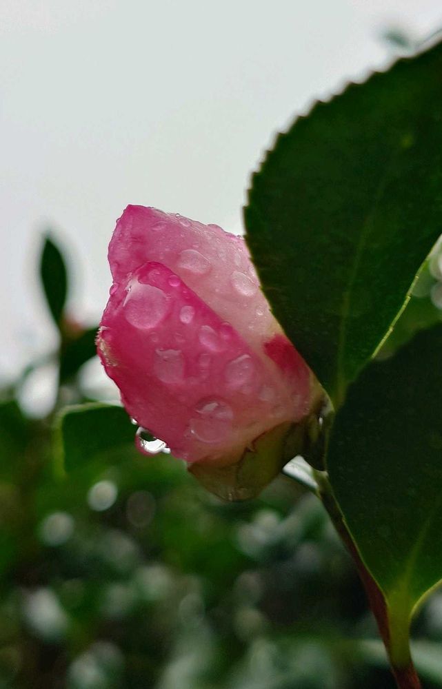 ご近所さんの山茶花のつぼみもしっとりと水滴を纏っています😅