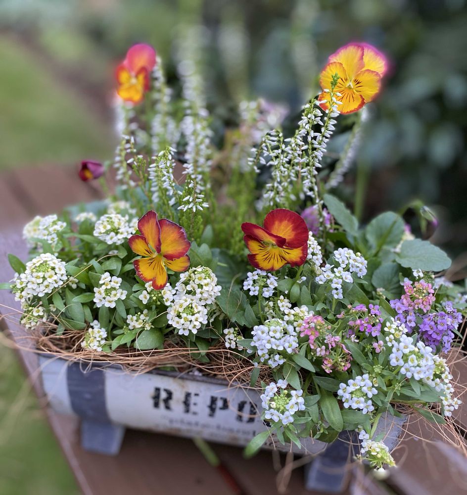 木、金休みの予定でしたが仕事回らなくて急遽出勤に 水曜日に慌てて寄せ植え作りました 娘にෆ.*・゚