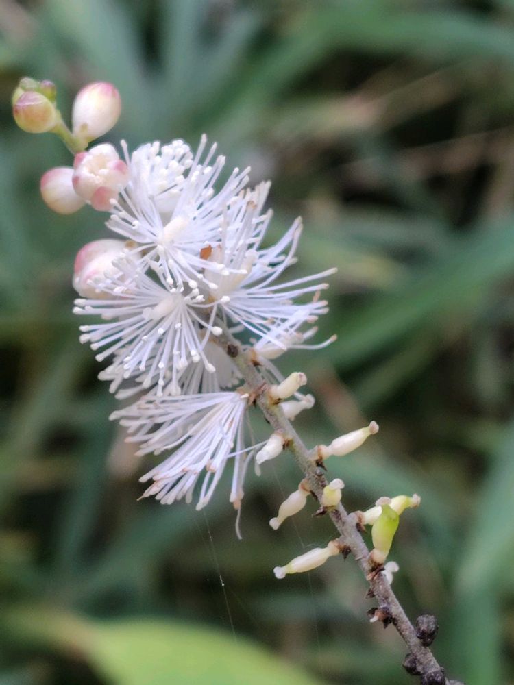 開花とともに、萼片と花弁は落ち、白い雄しべがよく目立つ。