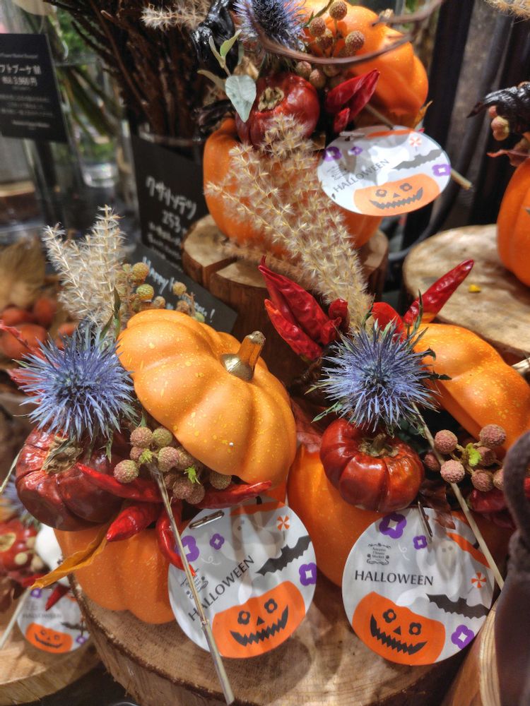 ①②お花屋さんのハロウィン🎃のディスプレイを撮らせていただきました〜