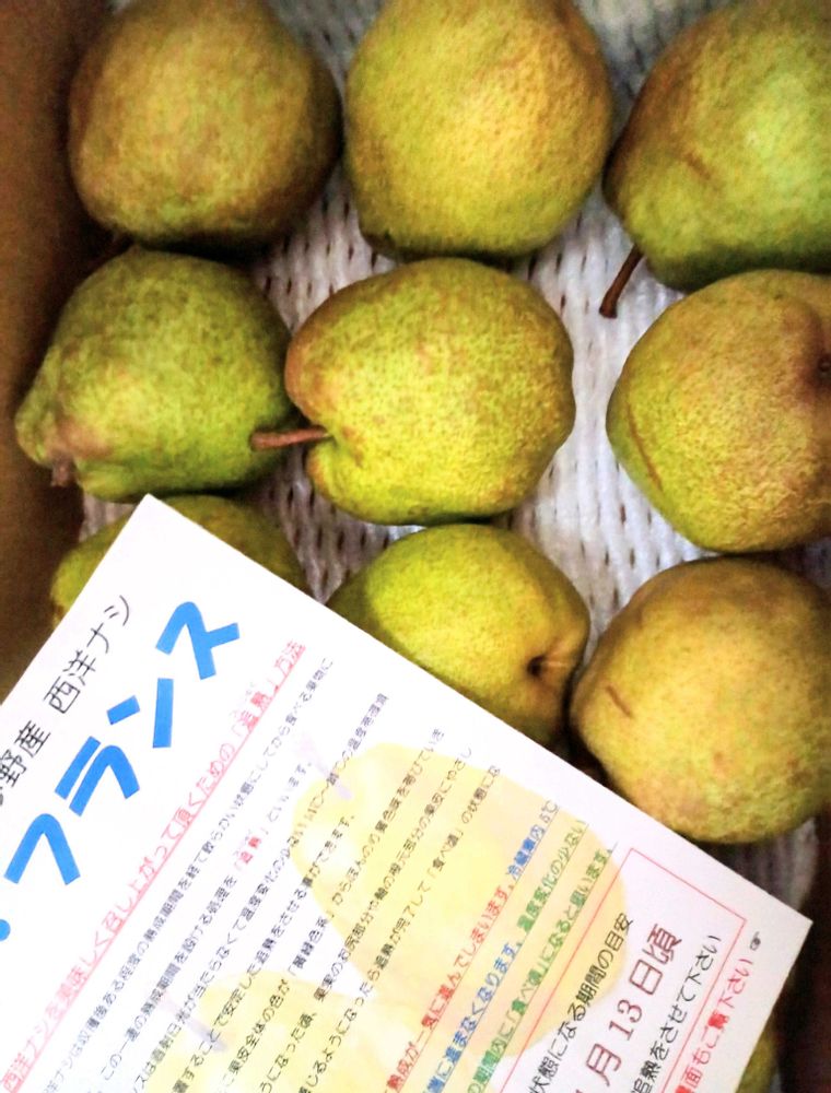 洋ナシ🍐ラ・フランスを 蓼科自由農園で購入〜来月中頃まで追熟必要で、まだ食べられません😋🤣(今月20日📸パチリ!)