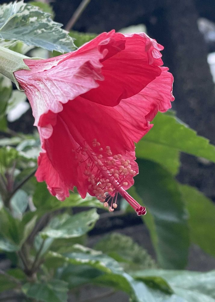 hannon le.さんの小さな庭,斑入りハイビスカス,赤い花の投稿画像