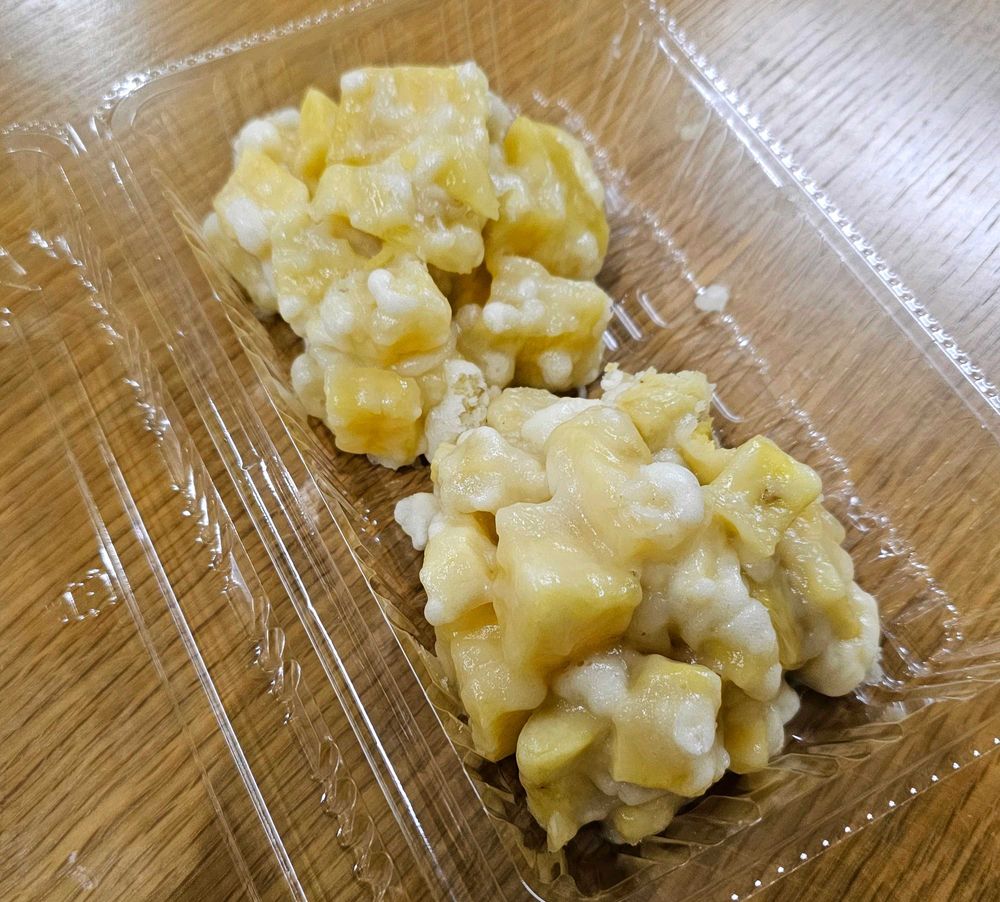 名古屋市周辺が発祥地らしいがこの角切りのサツマイモがゴツゴツして鬼の角や金棒を連想させることから命名されたらしい