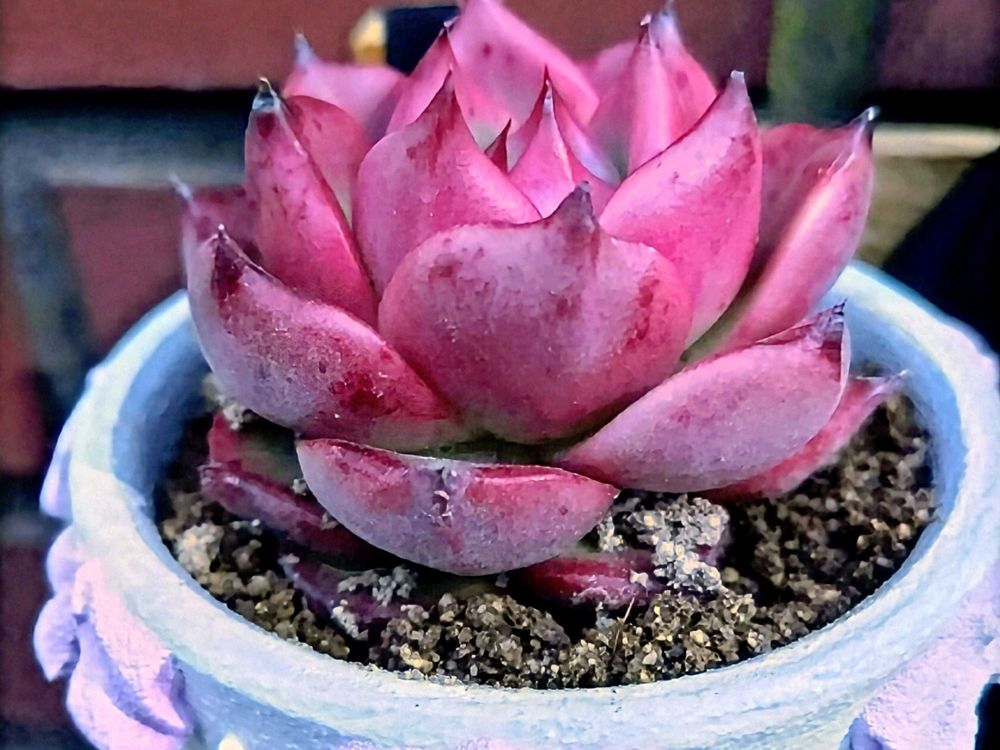 ②日曜日に𝐬𝐞𝐚𝐬𝐢𝐝𝐞多肉(うめ多肉)さんからお迎えしたピンクハニーをももりさんのリメ鉢に植えました🩷