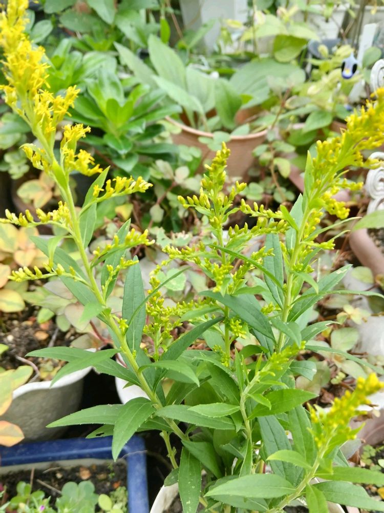 花粉症のもとなので抜いた花カットし、一時鉢花化。