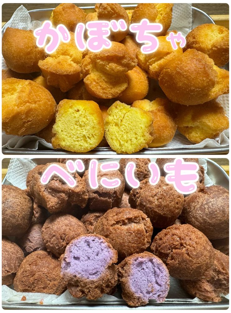 2枚目・サーターアンダギーの『かぼちゃ🎃』と『紅芋』の粉を頂いたので作りました。今日のおやつにしました。