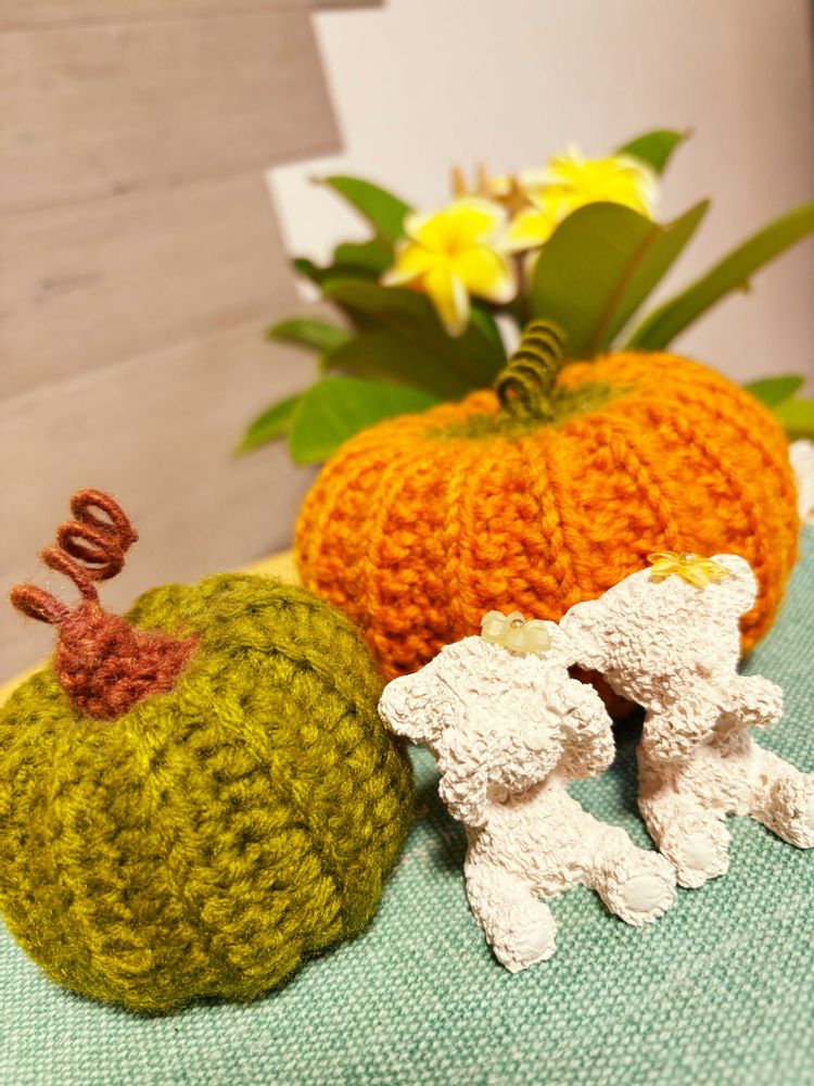 《編みぐるみ》のかぼちゃ🎃とプルメリア🌺