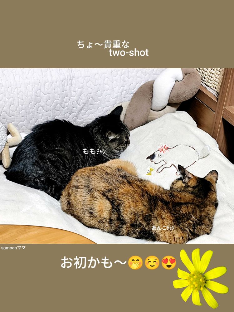 🐈⬛ももちゃん💓と🐈あんこちゃん💞は、微妙な関係なんですね(ノ∀≦。)ノぷぷ-ッ