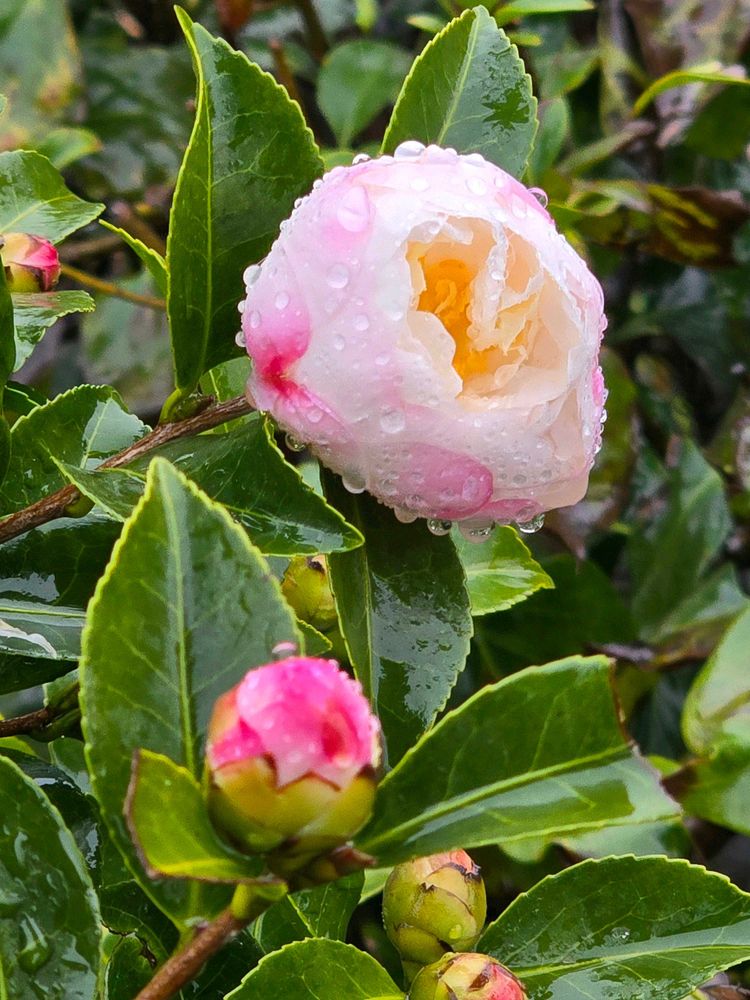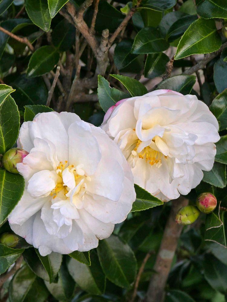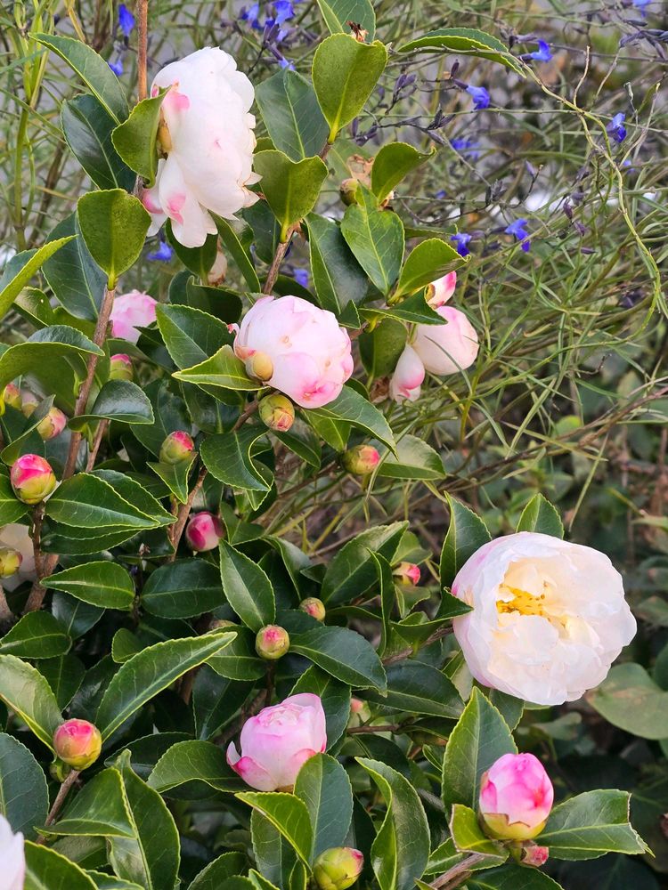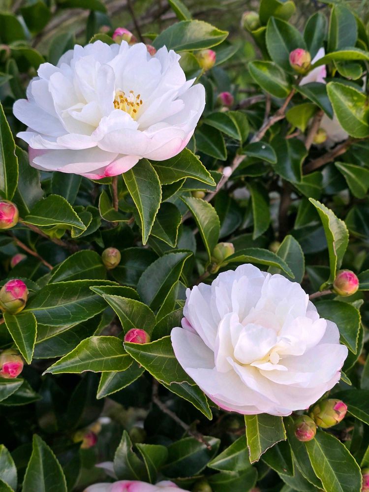 🤍にほんのり🩷の入った椿朝倉👀めちゃめちゃ(,,>᎑<,,)かわゆෆෆイィナァ꒰* ˘ ᵕ ˘*꒱✾八重咲きだょね🙋🏻♀蕾もたくさん😍全て咲いてくれたら良いですねぇ😊✋