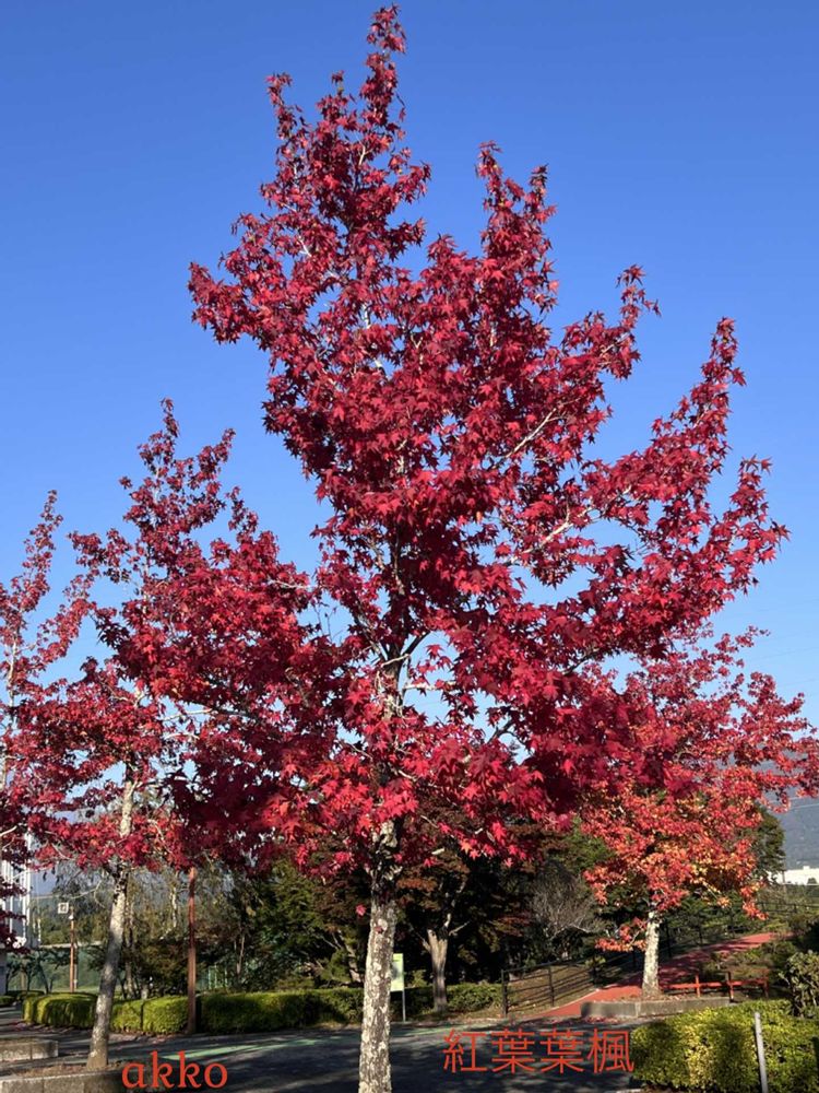 並木なように植えられた,🍁紅葉の形をした楓