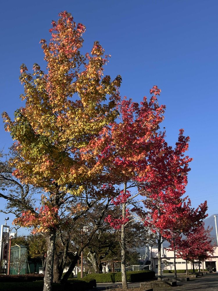 真っ赤な葉が青空に映えてます♥️