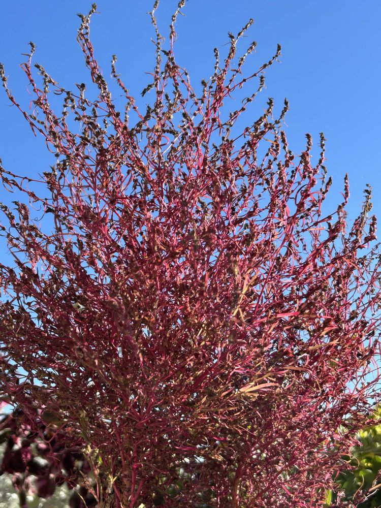コキアで箒を作ろうと、零れ種から巨大化したのを、夏の間他の植物が日陰になるのを我慢して伐採
