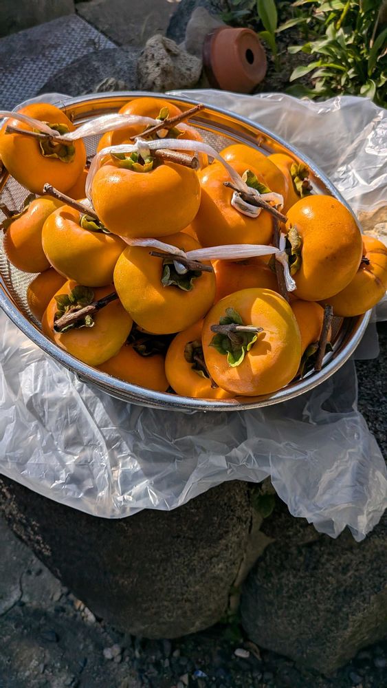 こんばんは😄私も聞いた時は(むかない渋柿) びっくりです。普通は甘いですが、彼女は好みでむかないでおいた 甘さの味が好きなんですって!?私は徳島県の愛宕柿で干し柿を作ります。