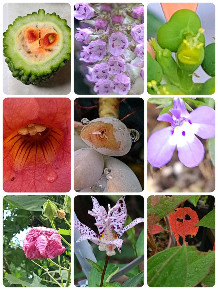 第83弾おめでとう㊗️🎊色々な顔見つけられましたね。どの顔も面白いけど上の段の右端がいいかな💖酔芙蓉も可愛い✨ホトトギスさんもいい顔してるし、右下はハロウィンぽいですね💖