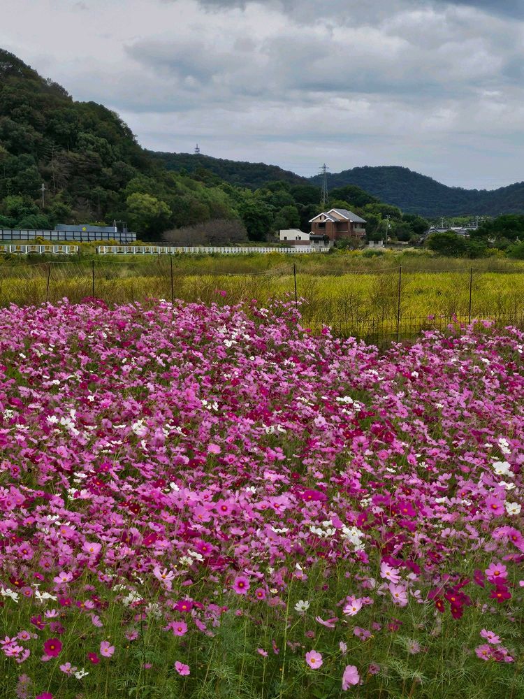 田んぼ一面にコスモスが咲いて、車を止めてもらって、撮ってきました🤞