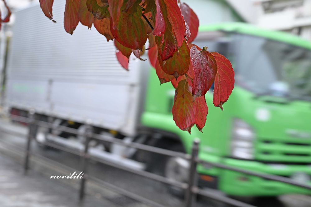 ハナミズキの葉っぱもきれいに色づき実も見えてます。