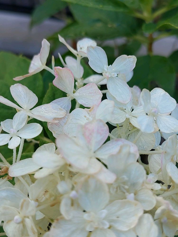 ③最後に咲いたノリウツギ、ほんのり紅色さして…他は緑色に変わったけれど、この房だけ違ってます。だけど茶色の部分もあって…