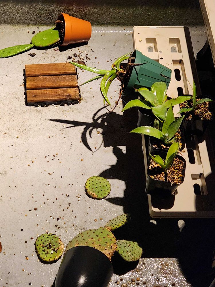 直径20センチ位の素焼き鉢まで倒されてるから、相当だったんだと思う↷😭
