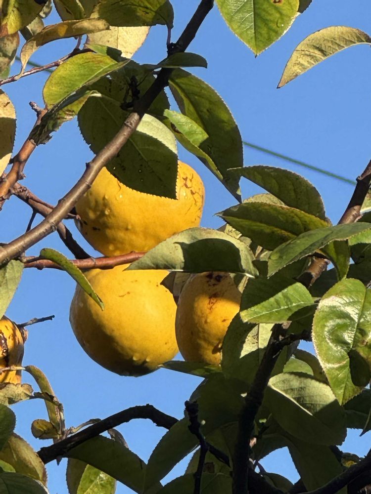 そのお花からは想像出来ないゴツい黄色🟡の実は、不思議としか言いようがないですが、カリンの実は、喉の痛みに効く😣というので、我が家では以前、子供たちが小さい頃はよくカリンのジュースを買っていました。