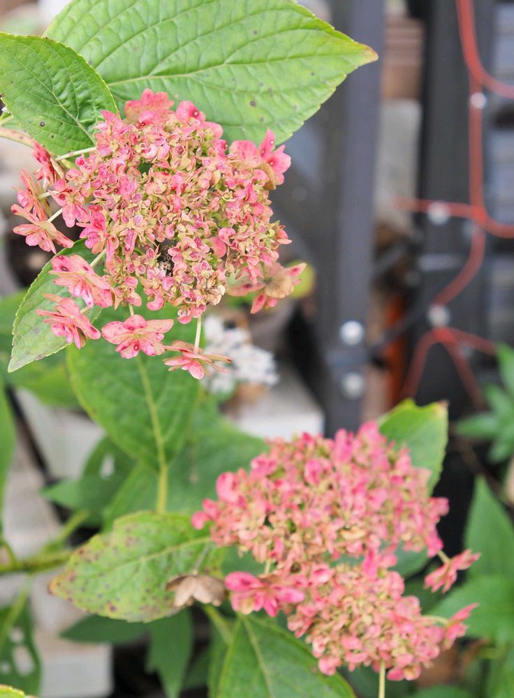 ほっぽりぱなしのあじさいが日陰にあるものは綺麗な赤になりました