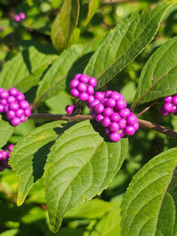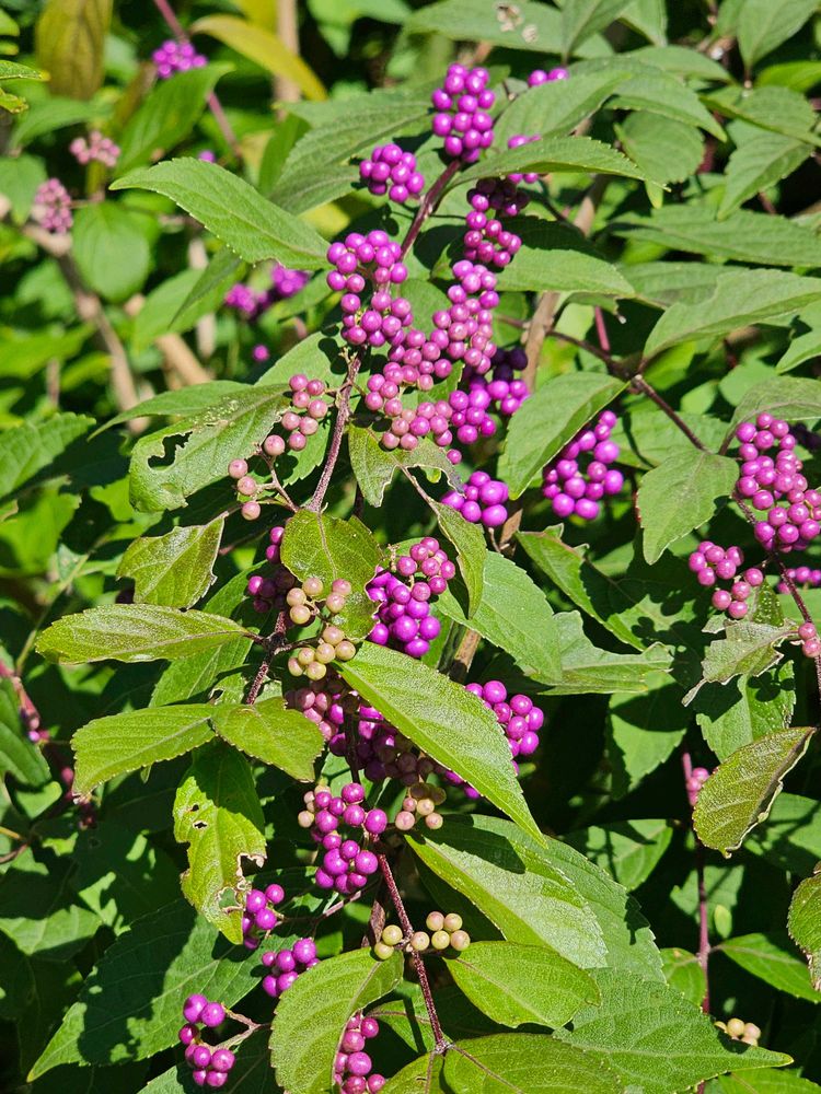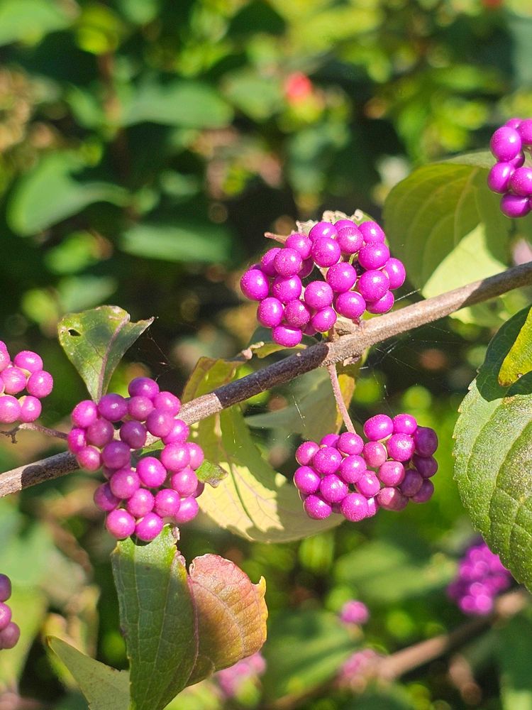このムラサキシキブ、光の加減でちょっとピンクっぽいけど名前の通り紫色なんよ