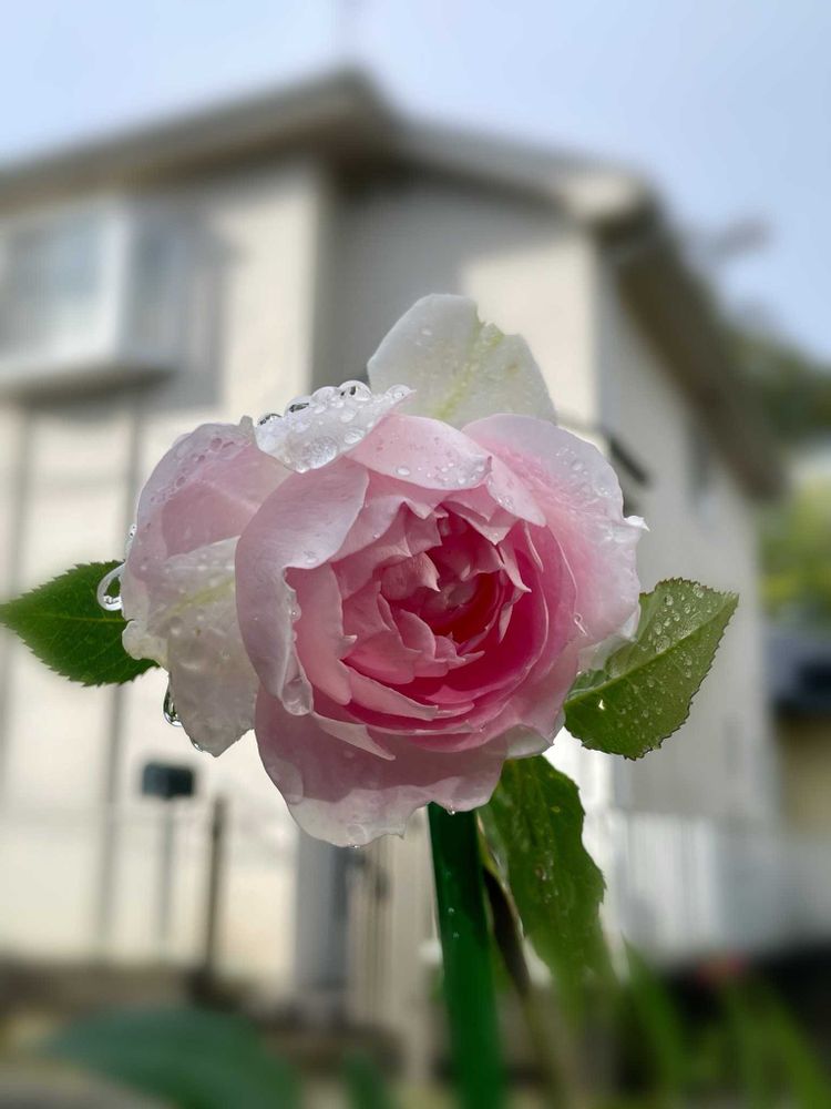 雫をまとって 鮮やかなピンクのバラさん…綺麗です🩷🫧