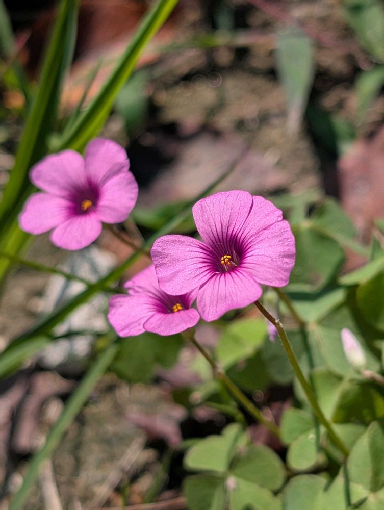 イモカタバミで合ってますか?派手さは無く、どちらかと言うと地味な存在ですが、よく見ると綺麗な色ですね。控え目なところが可愛らしです😉💜