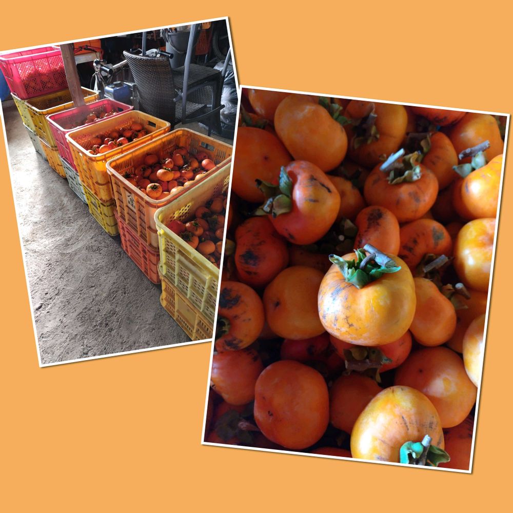 それでも、一昨日と昨日でコンテナ13個分の柿を何とか採り終えました🙍💦