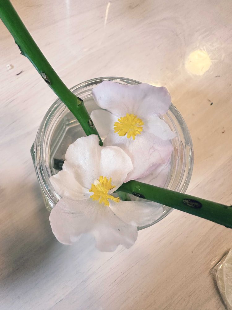 ベゴニアさん、大丈夫そうじゃなぁい?挿し木でも、増えそうだし、強そう💪喜ぶと思って摘んできてくれた気持ちが嬉しい☺️いい思い出になるね😊